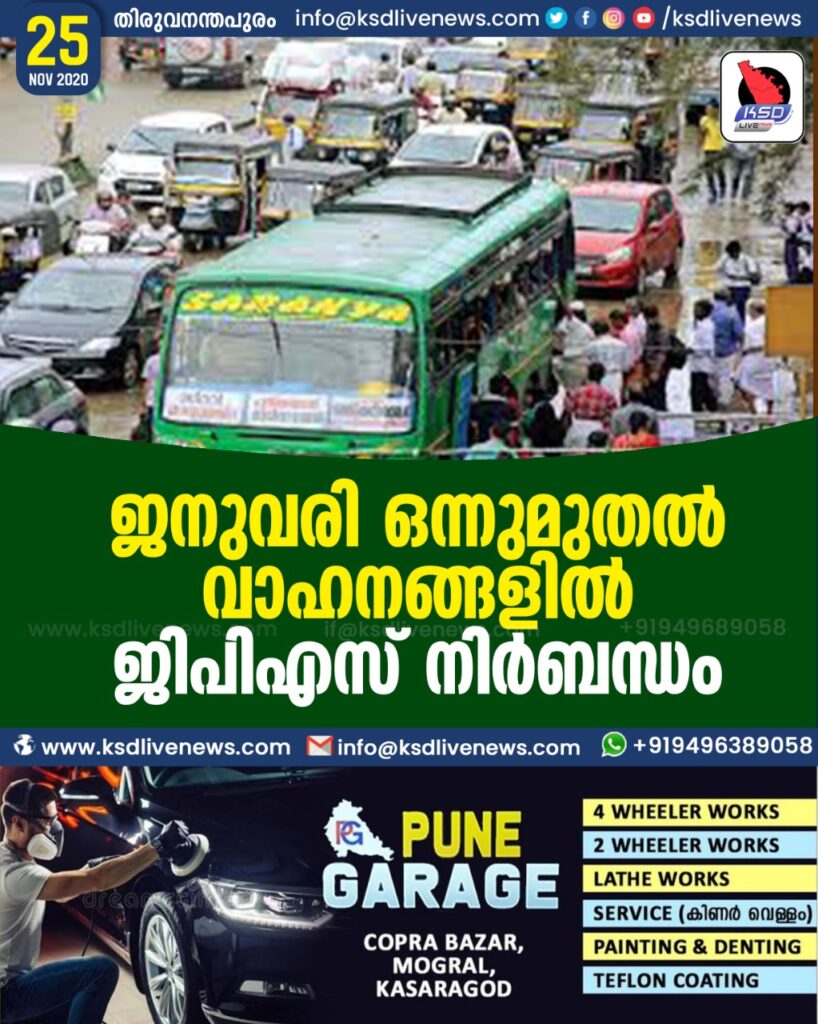 ജനുവരി ഒന്നുമുതൽ വാഹനങ്ങളിൽ ജിപിഎസ് നിർബന്ധം