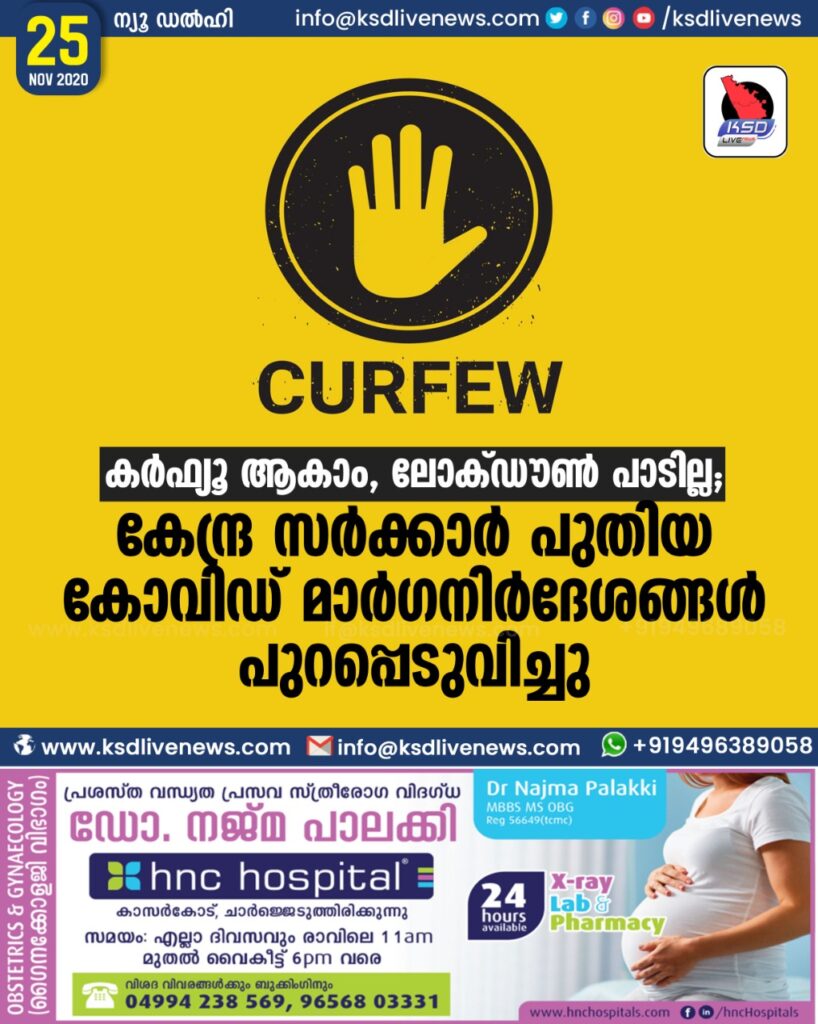 കർഫ്യൂ ആകാം,ലോക്ഡൗണ് പാടില്ല; കേന്ദ്ര സര്ക്കാര് പുതിയ കോവിഡ് മാര്ഗനിര്ദേശങ്ങള് പുറപ്പെടുവിച്ചു