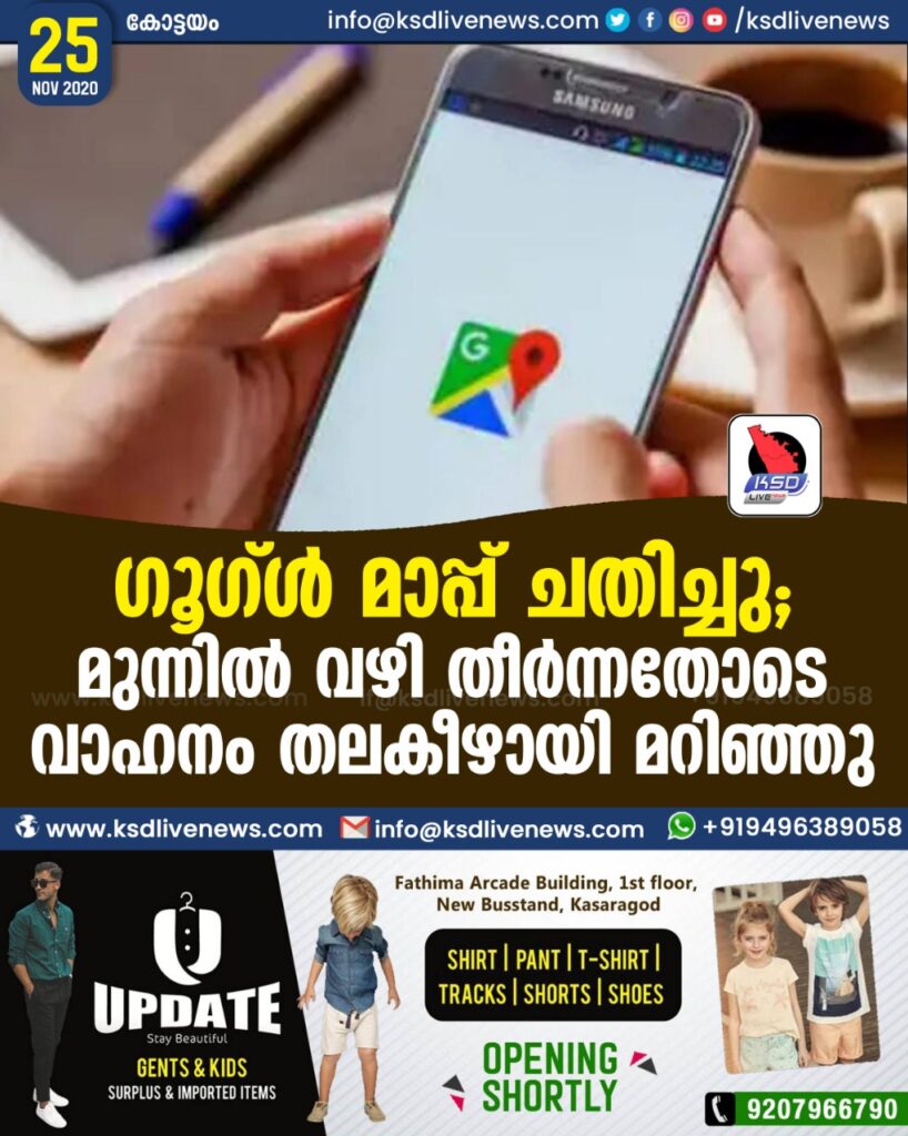 ഗൂഗ്ൾ മാപ്പ് ചതിച്ചു ; മുന്നിൽ വഴി തീർന്നതോടെ വാഹനം തലകീഴായി മറിഞ്ഞു