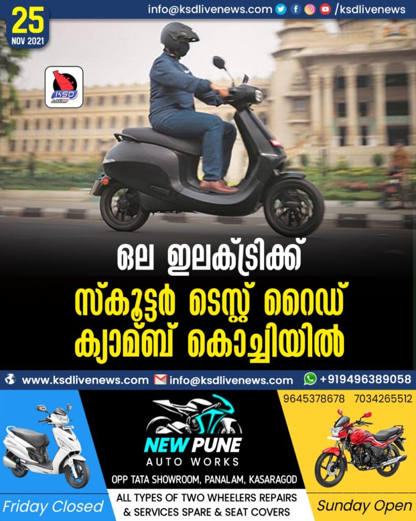 കൊച്ചി: ഒല ഇലക്ട്രിക്ക് (Ola Electric) സ്കൂട്ടര് ഉപഭോക്താക്കള്ക്കായി ടെസ്റ്റ് റൈഡ് ക്യാമ്ബുകള് ആരംഭിച്ചു.