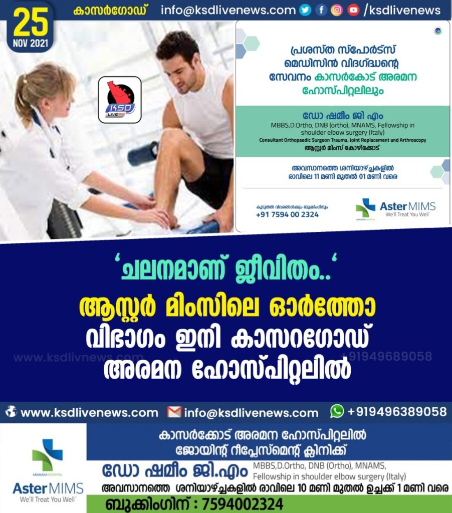 ആസ്റ്റർ മിംസ് ആശുപത്രിയിലെ ഓർത്തോ വിഭാഗം ഇനി കാസറഗോഡ് അരമന ഹോസ്പിറ്റലിൽ