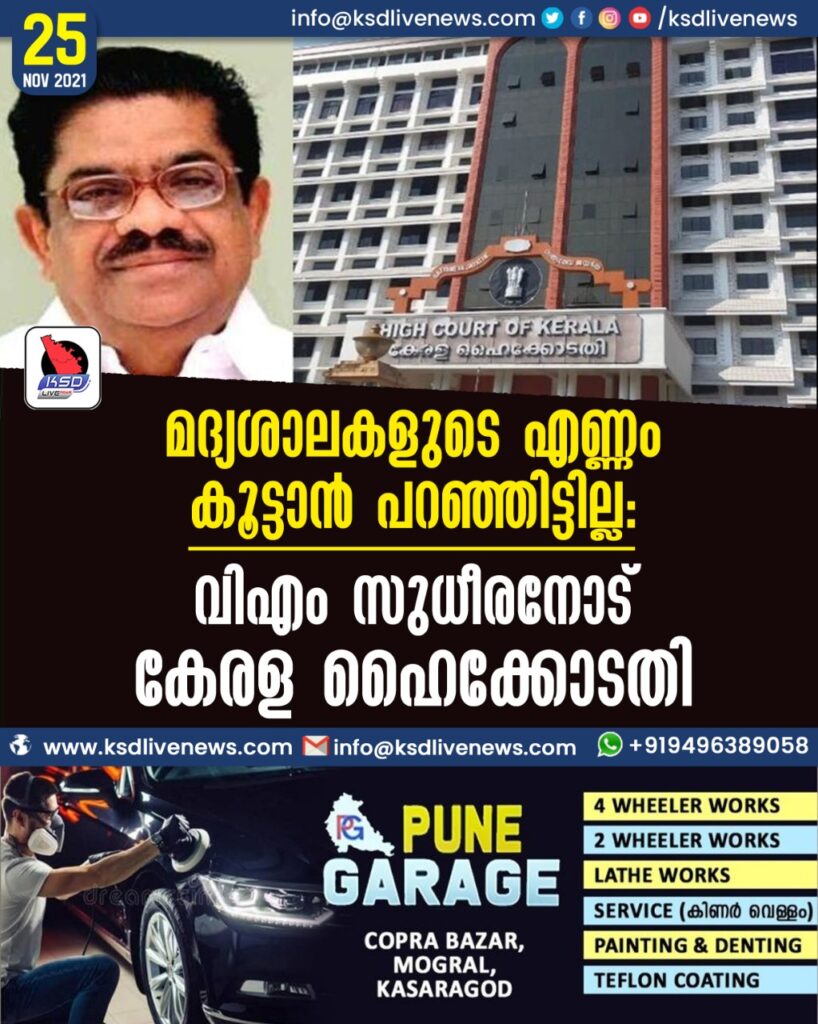 മദ്യശാലകളുടെ എണ്ണം കൂട്ടാന്‍ പറഞ്ഞിട്ടില്ല’: വിഎം സുധീരനോട് കേരള ഹൈക്കോടതി