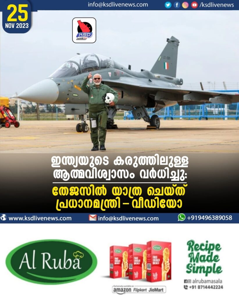 ‘ഇന്ത്യയുടെ കരുത്തിലുള്ള ആത്മവിശ്വാസം വര്‍ധിച്ചു’; തേജസില്‍ യാത്ര ചെയ്ത് പ്രധാനമന്ത്രി-VIDEO