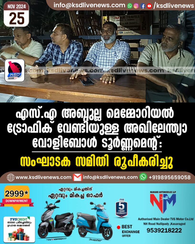 എസ്.എ അബ്ദുല്ല മെമ്മോറിയൽ ട്രോഫിക് വേണ്ടിയുള്ള അഖിലേന്ത്യാ വോളിബോൾ ടൂർണ്ണമെന്റ് സംഘാടക സമിതി രൂപീകരിച്ചു