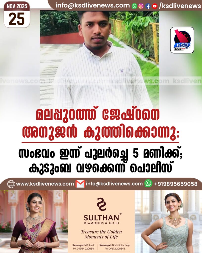 മലപ്പുറം: മലപ്പുറം പൂക്കോട്ടൂർ പള്ളിമുക്കില് ജേഷ്ഠനെ അനുജൻ കുത്തിക്കൊന്നു. അമീർ ആണ് മരിച്ചത്. സംഭവത്തില് സഹോദരൻ ജുനൈദിനെ മഞ്ചേരി പൊലീസ് കസ്റ്റഡിയിലെടുത്തു. കുടുംബ വഴക്കിനെ തുടർന്നുള്ള കൊലപാതകമെന്ന് പൊലീസ്. പുലർച്ചെ 5 മണിയോടെയായിരുന്നു കൊലപാതകം.