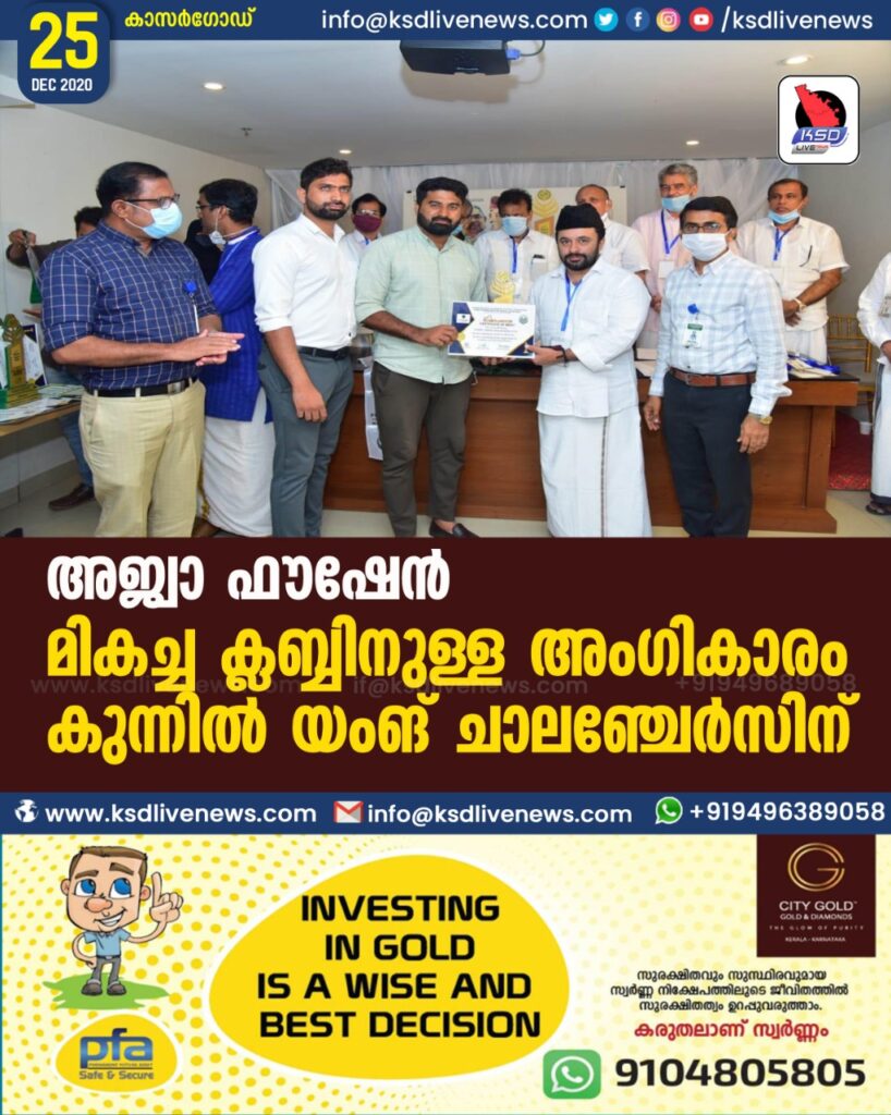 കോവിഡ് കാലത്തെ നിസ്വാർത്ഥമായ പ്രവർത്തനത്തിലാണ് ഈ അംഗികാരം കുന്നിൽ യംങ് ചാലഞ്ചേർസിനെ തേടി എത്തിയത്