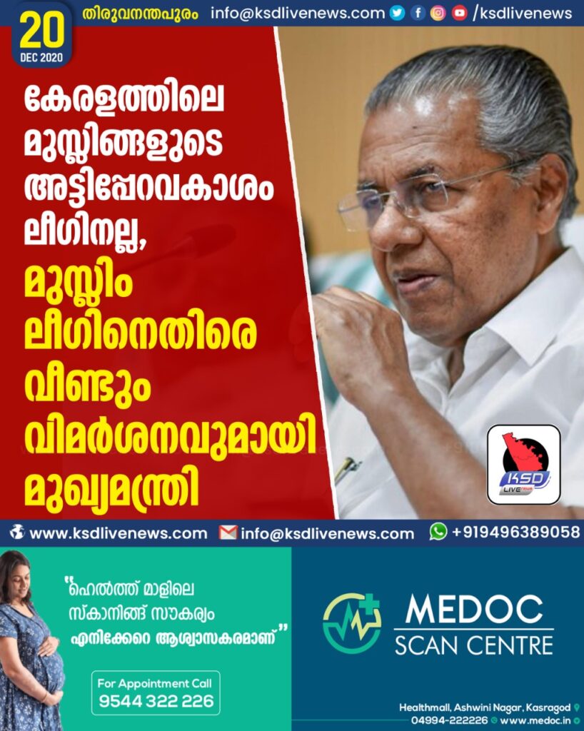 കേരളത്തിലെ മുസ്ലിങ്ങളുടെ അട്ടിപ്പേറവകാശം ലീഗിനല്ല , മുസ്ലിം ലീഗിനെതിരെ വീണ്ടും വിമർശനവുമായി മുഖ്യമന്ത്രി