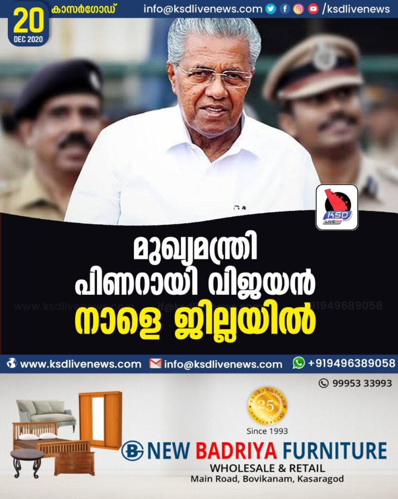 മുഖ്യമന്ത്രി പിണറായി വിജയൻ നാളെ ജില്ലയില്