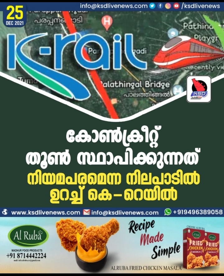 കോണ്ക്രീറ്റ് തൂണ് സ്ഥാപിക്കുന്നത് നിയമപരമെന്ന നിലപാടില് ഉറച്ച് കെ-റെയില്
