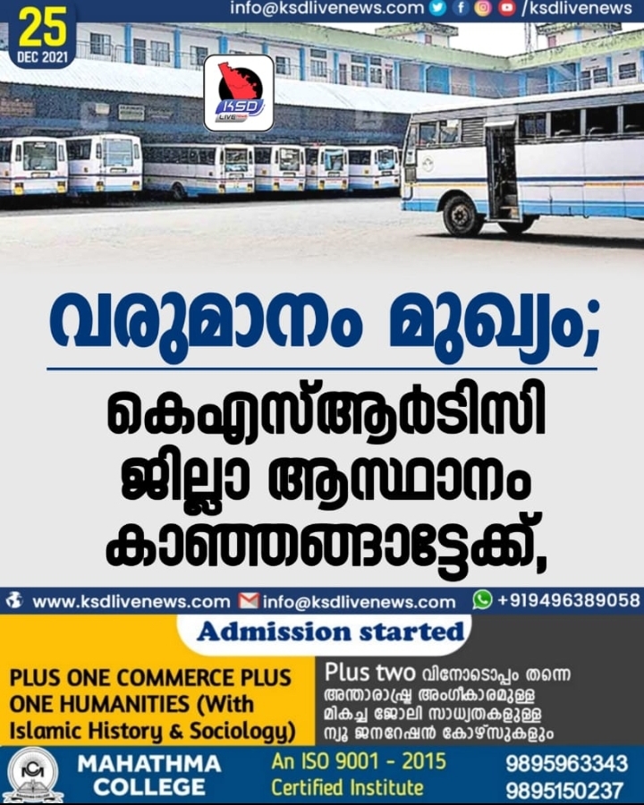 വരുമാനം മുഖ്യം; കെഎസ്ആർടിസി ജില്ലാ ആസ്ഥാനം കാഞ്ഞങ്ങാട്ടേക്ക്,