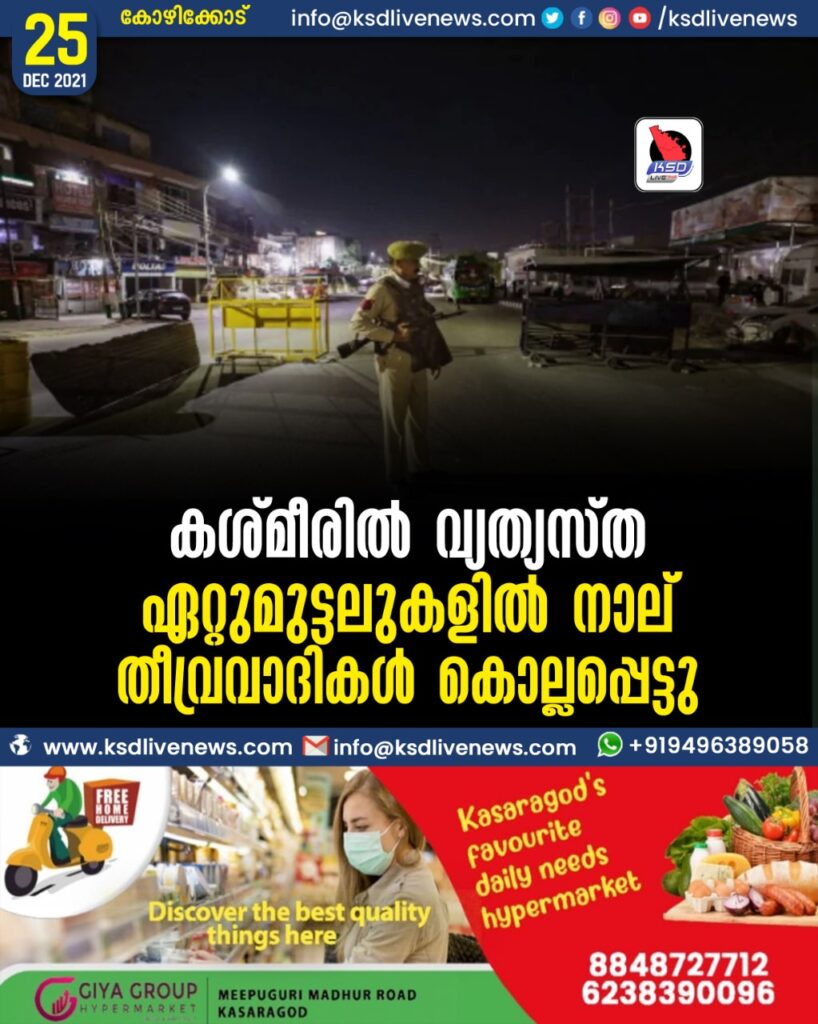 കശ്മീരില് വ്യത്യസ്ത ഏറ്റുമുട്ടലുകളില് നാല് തീവ്രവാദികള് കൊല്ലപ്പെട്ടു