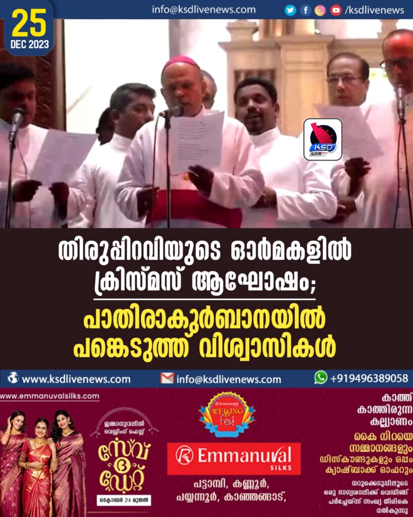 കുർബാനക്ക് നേതൃത്വം നൽകിയതും അദ്ദേഹമായിരുന്നു. യുദ്ധങ്ങൾ അവസാനിച്ച് സമാധാനം ഉണ്ടാകണമെന്ന് ക്രിസ്മസ് സന്ദേശത്തിൽ ഫാദർ വർഗീസ് ചക്കാലക്കൽ പറഞ്ഞു. താമരശ്ശേരി മേരി മാതാ കത്തീഡ്രലിൽ ബിഷപ്പ് മാർ റമീജിയോസ് ഇഞ്ചനാനിയലിന്റെ നേതൃത്വത്തിലും കുർബാന നടന്നു