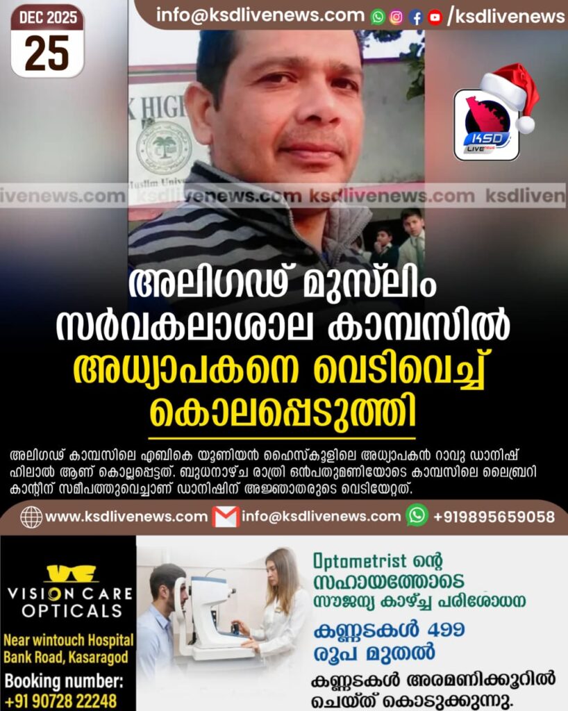 അലിഗഢ് മുസ്‌ലിം സർവകലാശാല കാമ്പസിൽ അധ്യാപകനെ വെടിവെച്ച് കൊലപ്പെടുത്തി