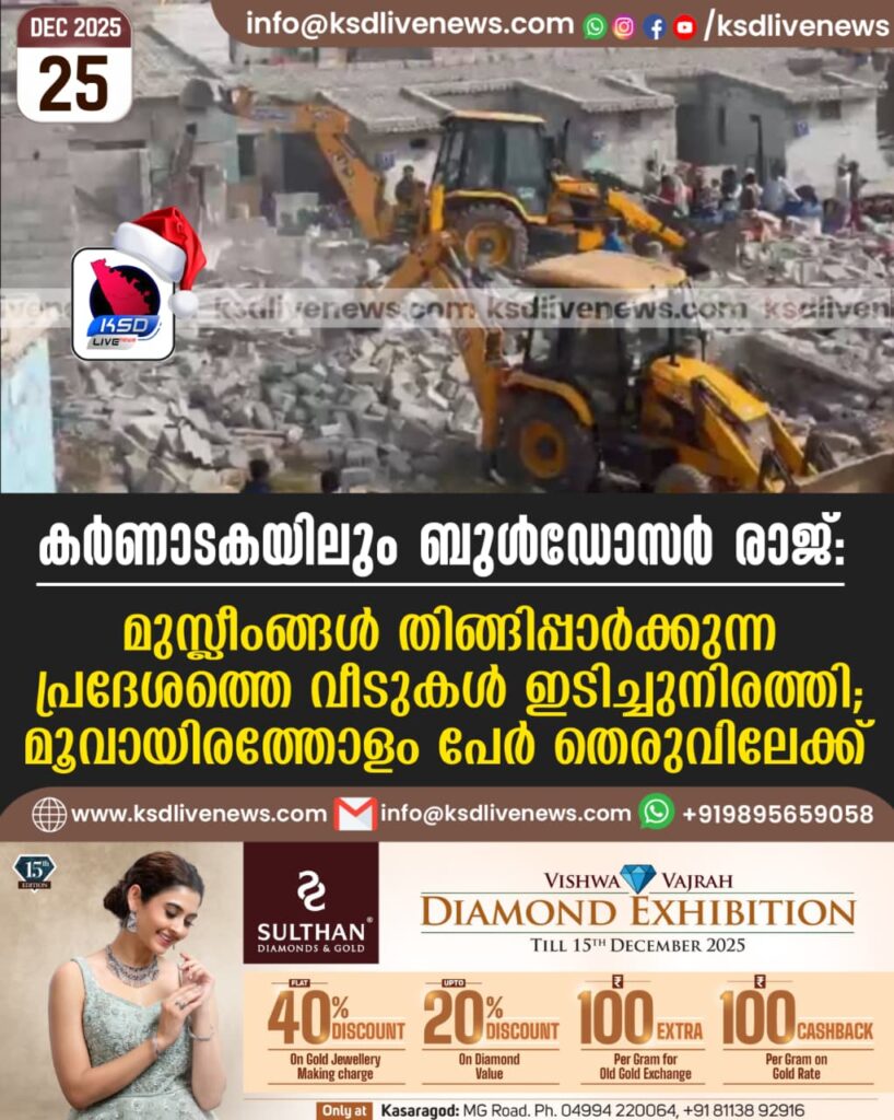 കർണാടകയിലും ബുൾഡോസർ രാജ്: മുസ്ലീംങ്ങൾ തിങ്ങിപ്പാർക്കുന്ന പ്രദേശത്തെ വീടുകൾ ഇടിച്ചുനിരത്തി, മൂവായിരത്തോളം പേർ തെരുവിലേക്ക്