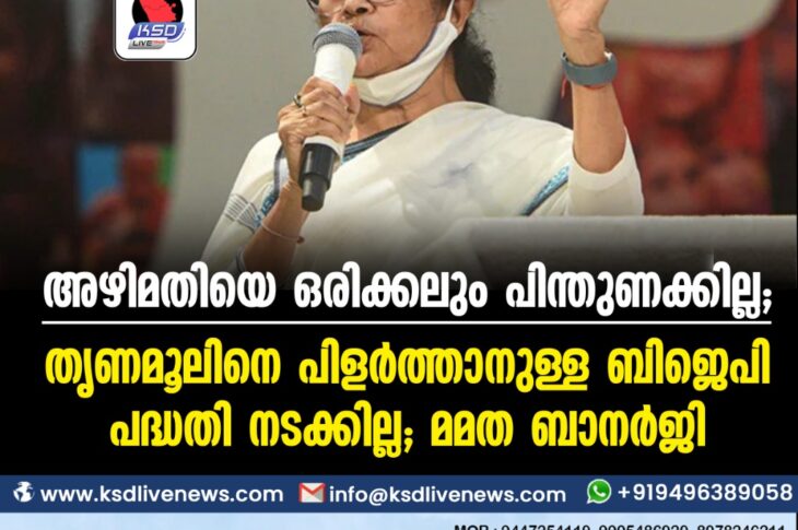 ദേശീയം അഴിമതിയെ ഒരിക്കലും പിന്തുണക്കില്ല; തൃണമൂലിനെ പിളര്ത്താനുള്ള ബിജെപി പദ്ധതി നടക്കില്ല-മമത ബാനര്ജിJuly 25, 2022
