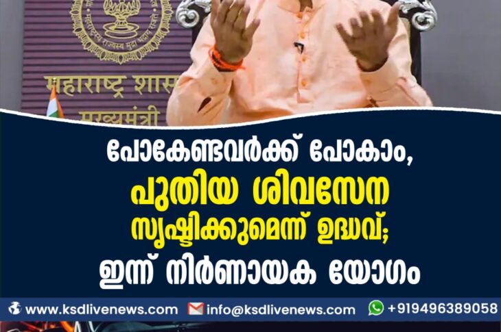 ദേശീയം പോകേണ്ടവര്ക്ക് പോകാം, പുതിയ ശിവസേന സൃഷ്ടിക്കുമെന്ന് ഉദ്ധവ്; ഇന്ന് നിര്ണായക യോഗം.June 25, 2022