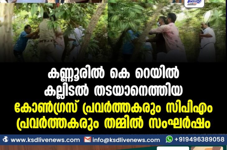 കേരളം കണ്ണൂരില് കെ റെയില് കല്ലിടല് തടയാനെത്തിയ കോണ്ഗ്രസ് പ്രവര്ത്തകരും സിപിഎം പ്രവര്ത്തകരും തമ്മില് സംഘര്ഷംApril 25, 2022