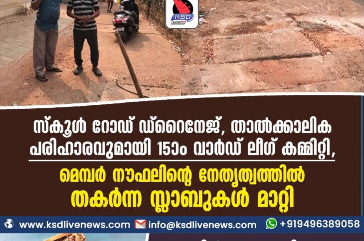 പ്രാദേശികം സ്കൂൾ റോഡ് ഡ്റൈനേജ് ,താൽക്കാലിക പരിഹാരവുമായി 15-ാം വാർഡ് ലീഗ് കമ്മിറ്റി, മെമ്പർ നൗഫലിൻ്റെ നേതൃത്വത്തിൽ തകർന്ന സ്ലാബുകൾ മാറ്റി,March 25, 2022