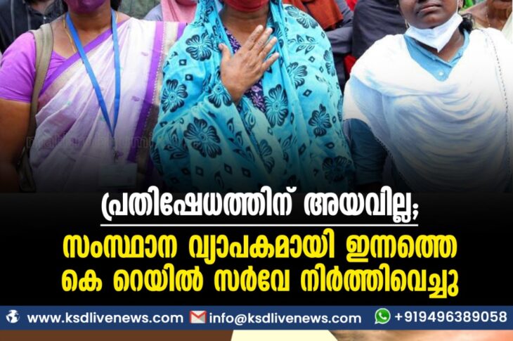 കേരളം പ്രതിഷേധത്തിന് അയവില്ല; സംസ്ഥാന വ്യാപകമായി ഇന്നത്തെ കെ റെയില് സര്വേ നിര്ത്തിവെച്ചുMarch 25, 2022