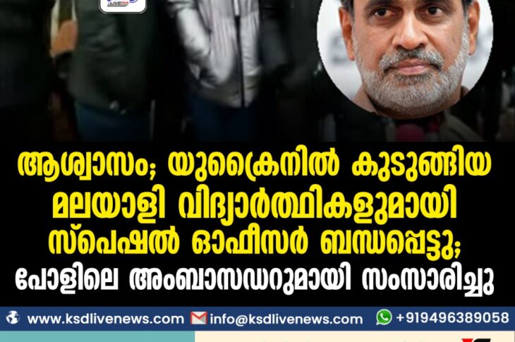 ദേശീയം ആശ്വാസം; യുക്രൈനില് കുടുങ്ങിയ മലയാളി വിദ്യാര്ത്ഥികളുമായി സ്പെഷല് ഓഫീസര് ബന്ധപ്പെട്ടു, പോളണ്ടിലെ അംബാസഡറുമായി സംസാരിച്ചുFebruary 25, 2022
