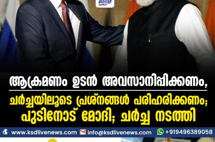 ദേശീയം ആക്രമണം ഉടന് അവസാനിപ്പിക്കണം, ചര്ച്ചയിലൂടെ പ്രശ്നങ്ങള് പരിഹരിക്കണം; പുടിനോട് മോദി; ചര്ച്ച നടത്തിFebruary 25, 2022