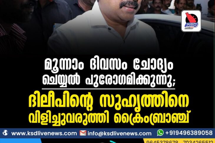 കേരളം മൂന്നാം ദിവസം ചോദ്യം ചെയ്യല് പുരോഗമിക്കുന്നു; ദിലീപിന്റെ സുഹൃത്തിനെ വിളിച്ചുവരുത്തി ക്രൈംബ്രാഞ്ച്January 25, 2022