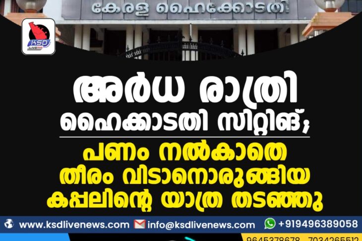 കേരളം അര്ധ രാത്രി ഹൈക്കാടതി സിറ്റിങ്; പണം നല്കാതെ തീരം വിടാനൊരുങ്ങിയ കപ്പലിന്റെ യാത്ര തടഞ്ഞുJanuary 25, 2022