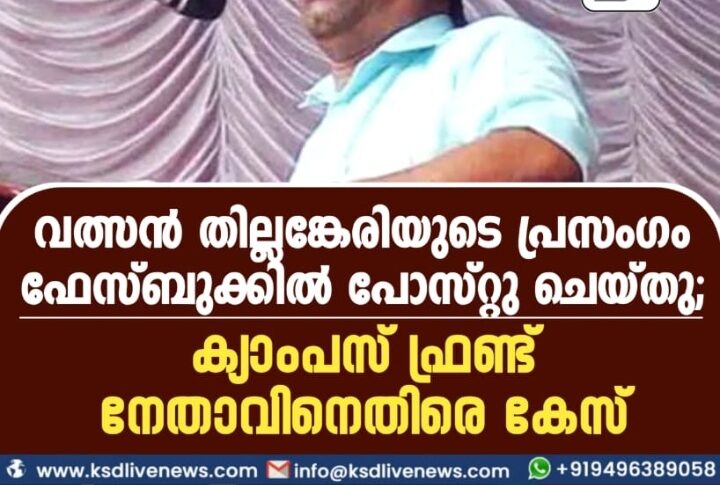 കേരളം വത്സന് തില്ലങ്കേരിയുടെ പ്രസംഗം ഫേസ്ബുക്കില് പോസ്റ്റു ചെയ്തു; ക്യാംപസ് ഫ്രണ്ട് നേതാവിനെതിരെ കേസ്December 25, 2021