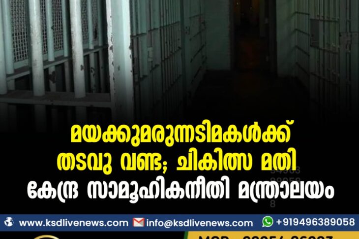 ദേശീയം മയക്കുമരുന്നടിമകൾക്ക് തടവു വേണ്ട; ചികിത്സ മതി – കേന്ദ്ര സാമൂഹികനീതി മന്ത്രാലയംOctober 25, 2021