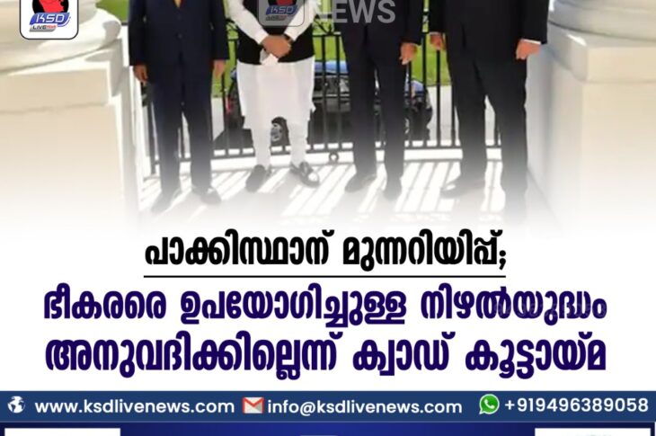 വിദേശം പാക്കിസ്ഥാന് മുന്നറിയിപ്പ്: ഭീകരരെ ഉപയോഗിച്ചുള്ള നിഴൽയുദ്ധം അനുവദിക്കില്ലെന്ന് ക്വാഡ് കൂട്ടായ്മSeptember 25, 2021