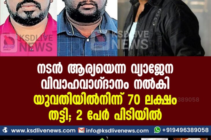 ദേശീയം നടൻ ആര്യയെന്ന വ്യാജേന വിവാഹവാഗ്ദാനം നൽകി യുവതിയില്നിന്ന് 70 ലക്ഷം തട്ടി; 2 പേർ പിടിയിൽAugust 25, 2021