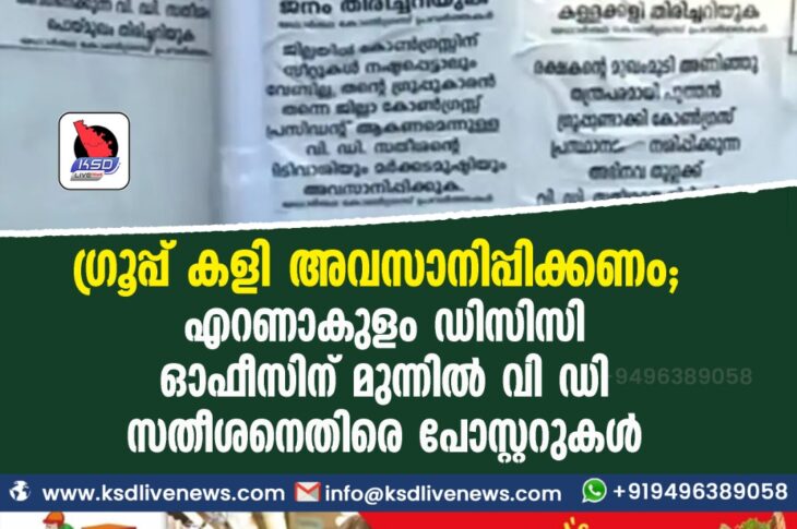 കേരളം ഗ്രൂപ്പ് കളി അവസാനിപ്പിക്കണം; എറണാകുളം ഡിസിസി ഓഫീസിന് മുന്നിൽ വി ഡി സതീശനെതിരെ പോസ്റ്ററുകൾAugust 25, 2021