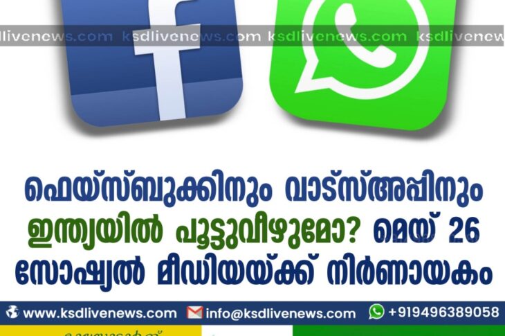 ദേശീയം ഫെയ്സ്ബുക്കിനും വാട്സ്അപ്പിനും ഇന്ത്യയില് പൂട്ടുവീഴുമോ? മെയ് 26 സോഷ്യല് മീഡിയയ്ക്ക് നിര്ണായകംMay 25, 2021