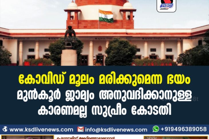ദേശീയം കോവിഡ് മൂലം മരിക്കുമെന്ന ഭയം മുന്കൂര് ജാമ്യം അനുവദിക്കാനുള്ള കാരണമല്ല- സുപ്രീം കോടതിMay 25, 2021