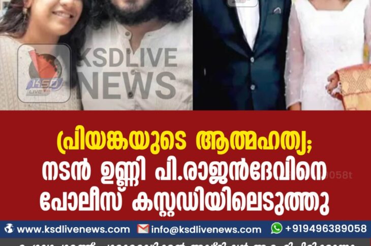 പ്രിയങ്കയുടെ ആത്മഹത്യ: നടന് ഉണ്ണി പി.രാജന്ദേവിനെ പോലീസ് കസ്റ്റഡിയിലെടുത്തു