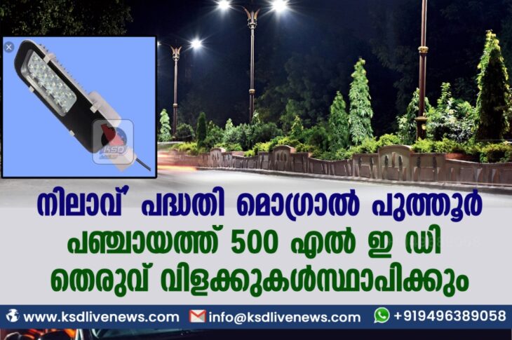 കാസർഗോഡ് നിലാവ്’ പദ്ധതി മൊഗ്രാൽ പുത്തൂർ പഞ്ചായത്ത് 500 എൽ ഇ ഡി തെരുവ് വിളക്കുകൾസ്ഥാപിക്കും.April 25, 2021