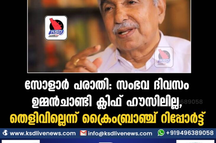 കേരളം സോളാര് പരാതി: സംഭവ ദിവസം ഉമ്മൻ ചാണ്ടി ക്ലിഫ് ഹൗസിലില്ല, തെളിവില്ലെന്ന് ക്രൈംബ്രാഞ്ച് റിപ്പോര്ട്ട്March 25, 2021