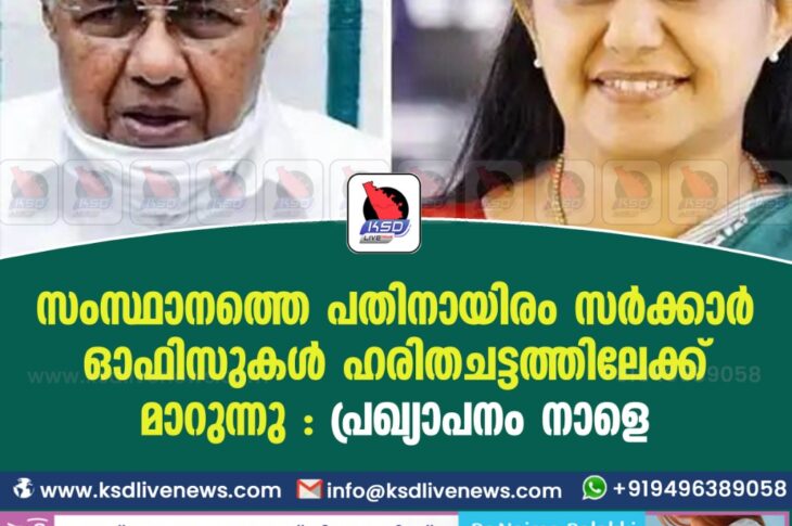കേരളം സംസ്ഥാനത്തെ പതിനായിരം സർക്കാർ ഓഫിസുകൾ ഹരിതചട്ടത്തിലേക്ക് മാറുന്നു : പ്രഖ്യാപനം നാളെJanuary 25, 2021