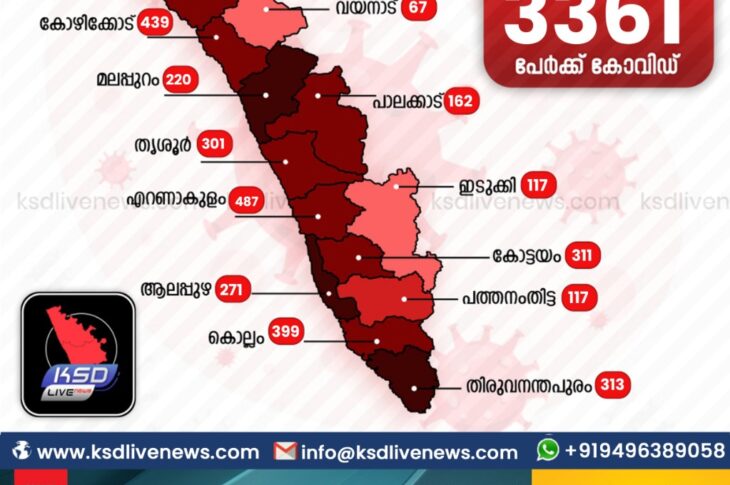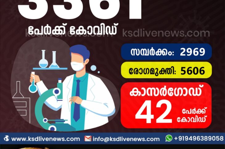 കേരളംകോവിഡ് 19 സംസ്ഥാനത്ത് ഇന്ന് 3361 പേർക്ക് കോവിഡ് സ്ഥിരീകരിച്ചു. സമ്പർക്കം വഴി 2961 പേർക്കും ; ആശ്വാസമായി 5606 പേർക്ക് രോഗ മുക്തിയും ; കാസർഗോഡ് ജില്ലയിൽ 42 പേർക്ക് പുതിയ കോവിഡ് കേസുകൾ ; മരണം 19January 25, 2021