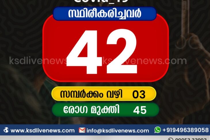 കാസർഗോഡ്കോവിഡ് 19 കാസർഗോഡ് ജില്ലയിൽ ഇന്ന് 42 പേർക്ക് കോവിഡ് സ്ഥിരീകരിച്ചു. സമ്പർക്കം വഴി 03 പേർക്കും. 45 പേർക്ക് രോഗമുക്തിJanuary 25, 2021