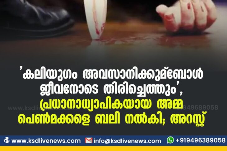 ദേശീയം ‘ കലിയുഗം അവസാനിക്കുമ്ബോൾ ജീവനോടെ തിരിച്ചെത്തും ‘ , പ്രധാനാധ്യാപികയായ അമ്മ പെൺമക്കളെ ബലി നൽകി ; അറസ്റ്റ്January 25, 2021