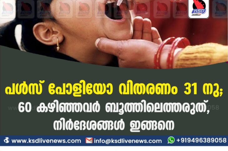പൾസ് പോളിയോ വിതരണം 31 നു ; 60 കഴിഞ്ഞവർ ബൂത്തിലെത്തരുത് , നിർദേശങ്ങൾ ഇങ്ങനെ