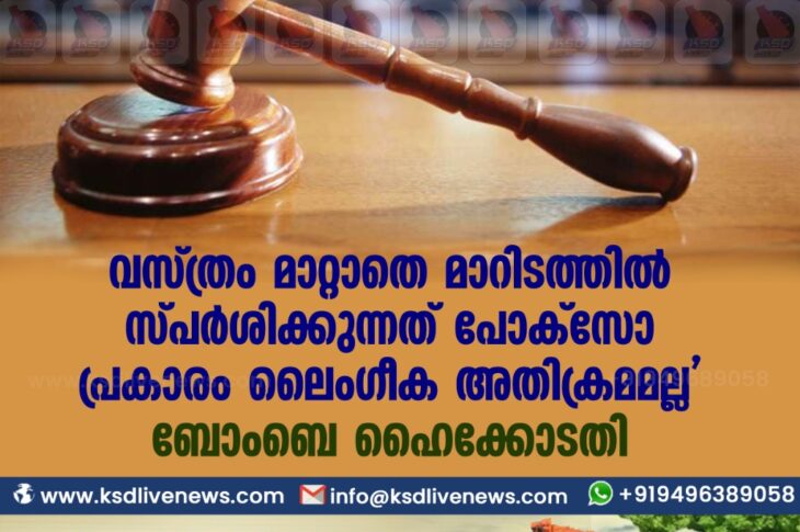 ദേശീയം വസ്ത്രം മാറ്റാതെ മാറിടത്തില് സ്പര്ശിക്കുന്നത് പോക്സോ പ്രകാരം ലൈംഗീക അതിക്രമമല്ല’ ബോംബെ ഹൈക്കോടതിJanuary 25, 2021