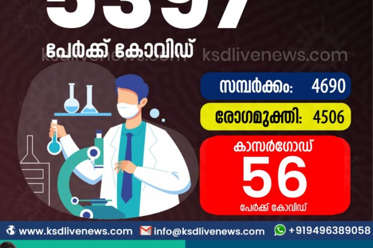 കേരളംകോവിഡ് 19 സംസ്ഥാനത്ത് ഇന്ന് 5397 പേർക്ക് കോവിഡ് സ്ഥിരീകരിച്ചു. സമ്പർക്കം വഴി 4690 പേർക്കും ; ആശ്വാസമായി 4506 പേർക്ക് രോഗ മുക്തിയും ; കാസർഗോഡ് ജില്ലയിൽ 56 പേർക്ക് പുതിയ കോവിഡ് കേസുകൾ ; മരണം 16December 25, 2020