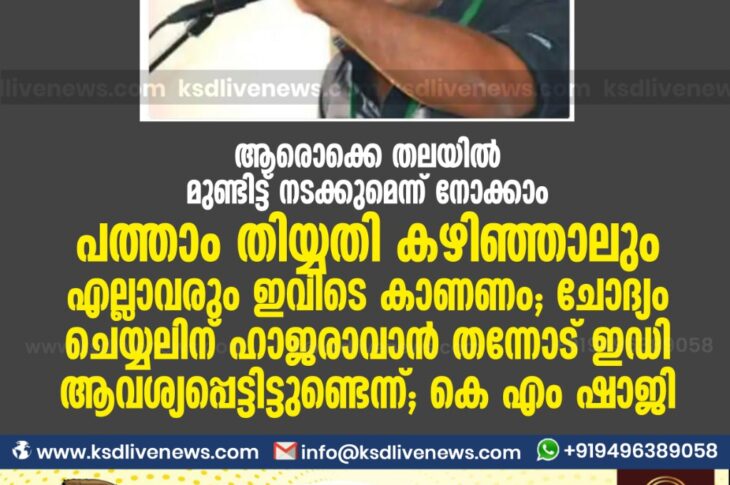 കേരളം ആരൊക്കെ തലയിൽ മുണ്ടിട്ട് നടക്കുമെന്ന് നോക്കാം ;പത്താം തിയ്യതി കഴിഞ്ഞാലും എല്ലാവരും ഇവിടെ കാണണം ; ചോദ്യം ചെയ്യലിന് ഹാജരാവാന് തന്നോട് ഇഡി ആവശ്യപ്പെട്ടിട്ടുണ്ടെന്ന് :കെ എം ഷാജിOctober 25, 2020