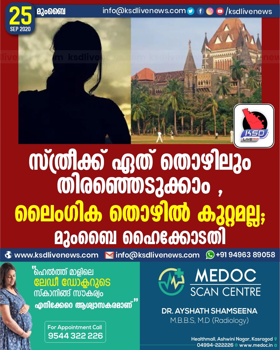 ദേശീയം സ്ത്രീക്ക് ഏത് തൊഴിലും തിരഞ്ഞെടുക്കാം , ലൈംഗിക തൊഴിൽ കുറ്റമല്ല ; മുംബൈ ഹൈക്കോടതിSeptember 25, 2020