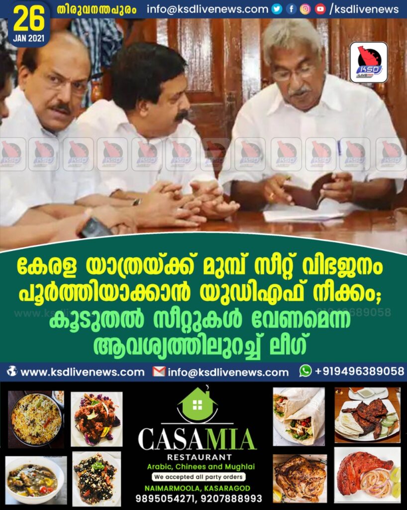 കേരള യാത്രയ്ക്ക് മുമ്പ് സീറ്റ് വിഭജനം പൂർത്തിയാക്കാൻ യുഡിഎഫ് നീക്കം ; കൂടുതൽ സീറ്റുകൾ വേണമെന്ന ആവശ്യത്തിലുറച്ച് ലീഗ്