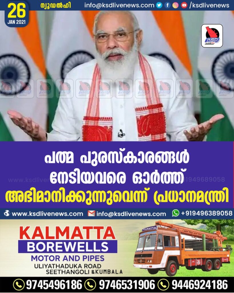പത്മ പുരസ്കാരങ്ങൾ നേടിയവ രെ ഓർത്ത് അഭിമാനിക്കുന്നുവെ ന്ന് പ്രധാനമന്ത്രി