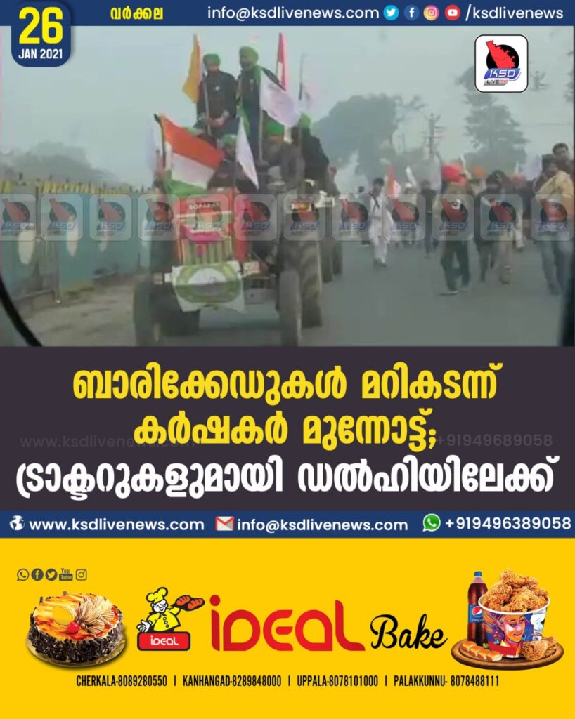 ബാരിക്കേഡുകൾ മറികടന്ന് കർഷകർ മുന്നോട്ട് ; ട്രാക്ടറുകളുമായി ഡൽഹിയിലേക്ക്