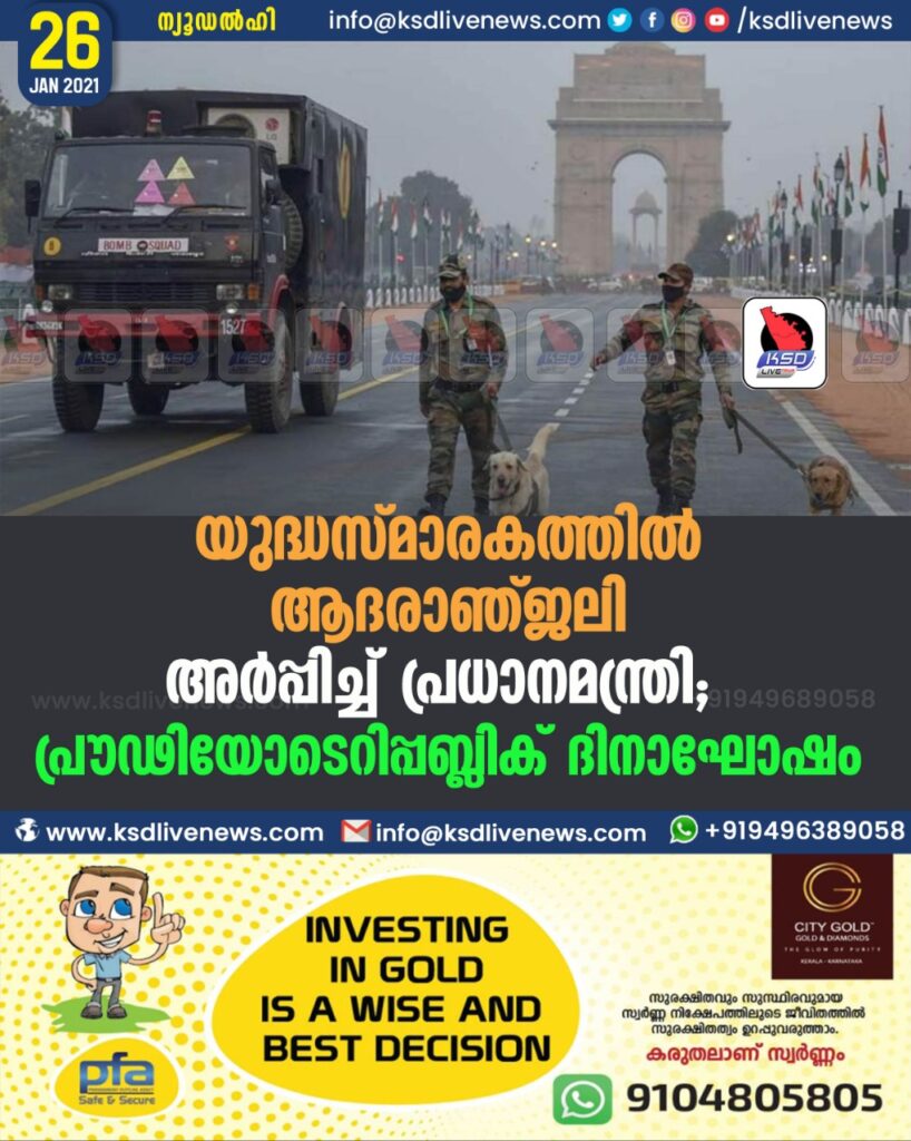 യുദ്ധസ്മാരകത്തിൽ ആദരാഞ്ജലി അർപ്പിച്ച് പ്രധാനമന്ത്രി; പ്രൗഢിയോടെ റിപ്പബ്ലിക് ദിനാഘോഷം